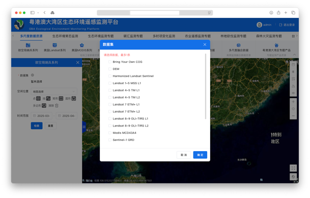 "我们研发的系统平台能够在线调取并处理多类别遥感数据。"陈劲松介绍,该系统平台构建了包括在线卫星数据资源(Landsat系列,Sentinel系列)、本地数据资源、专题监测产品、基础底图数据的多源时空数据库,同时系统与Google Earth Engine进行了接口对齐,并综合考虑了时空检索和数据更新需求,能够实现面向粤港澳大湾区国土资源与生态环境监测的时空数据的在线调度、管理、计算、存储与产品可视化渲染以及在线统计分析服务。