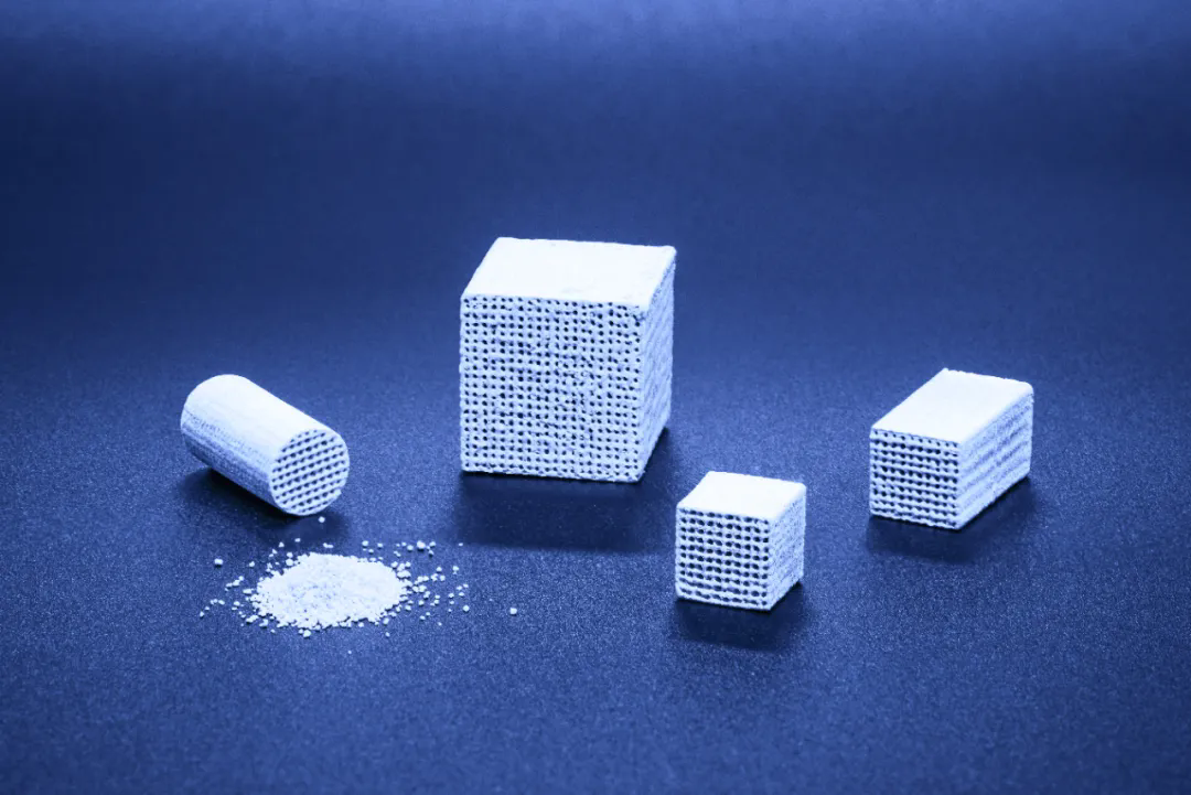 依托“产学研医”协同创新模式,转化中心顺利获得集成医学、生物学、材料学以及工程学等多学科交叉,利用低温3D打印方法开发出“含镁可降解高分子骨修复材料”,攻克了3D打印骨科器械的多项技术难点,成功实现了含镁骨修复材料的精准成型,并赋予材料特殊的仿生结构和适宜的强度。随着镁金属的加入,该材料不仅实现了与人体松质骨相近的力学强度,使其在手术操作中能够稳定应对冲击力,避免崩解或产生碎屑,还能在成骨早期给予稳定的力学支撑。同时,该材料能在6至9个月内完全降解并被人体充分吸收,避免了因材料残留引起的体内异物反应,降解过程中释放的镁离子能够参与新骨的形成和正常的生理代谢过程,加速骨缺损修复。