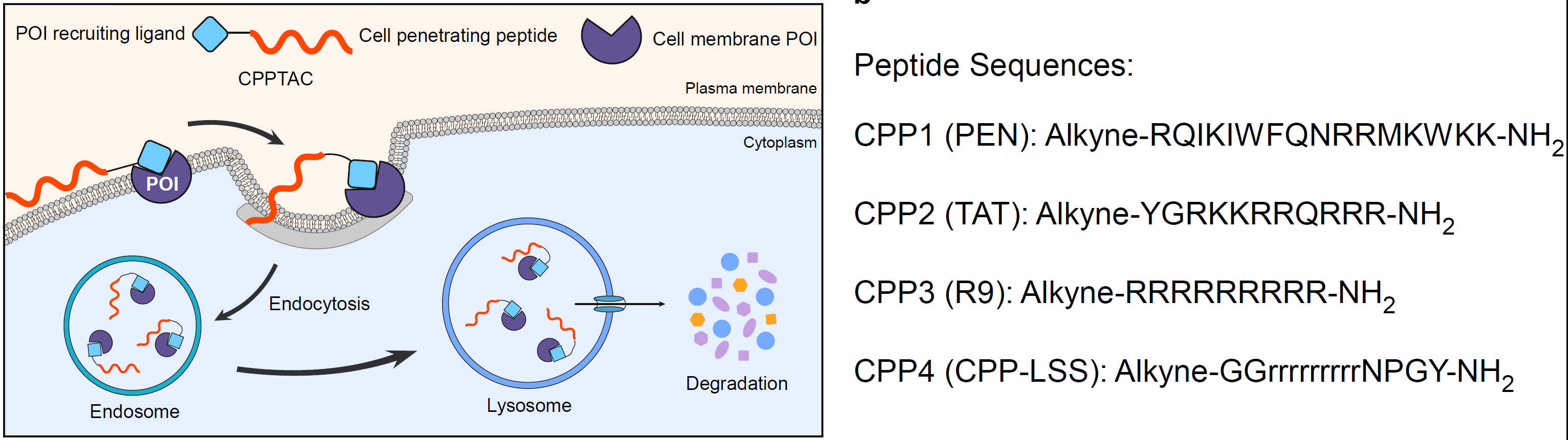 CPPTACs降解剂的构建原理和作用模式图