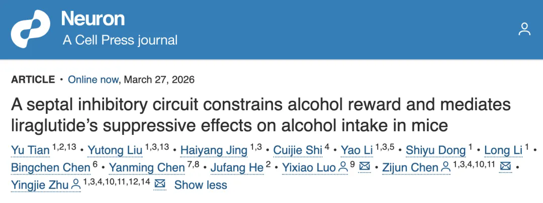 酒精使用障碍(俗称“酒精成瘾”)是一种慢性且易复发的脑疾病,现在临床上缺乏有效的精准治疗方法,对个体健康和社会公共卫生构成长期挑战。此前已有临床小样本研究发现,GLP-1 类药物可能降低饮酒行为,现在已有以司美格鲁肽为代表的GLP-1类药物召开针对酒精使用障碍的大规模临床研究。但GLP-1类药物究竟如何在大脑中调控酒精带来的愉悦感,从而减少饮酒冲动,不断缺乏清晰的神经机制解释。