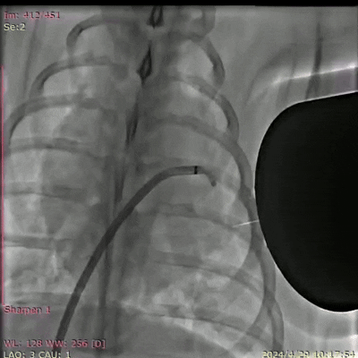 图3. DSA(数字减影血管造影)拍摄的巴马猪体内磁流体左心耳封堵实验过程(动图请看附件)。凯发k8官网供图