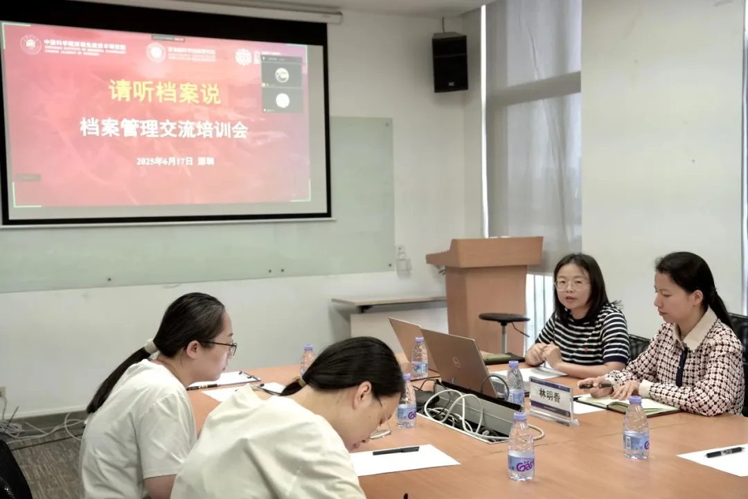 特邀院综合处综合档案室负责人林明香老师做专题分享;脑设施档案专员郑旖旎进行脑设施档案召开情况汇总和月度归档流程培训;脑所档案员黄彩媛进行脑所档案工作情况介绍,系统全面地从制度依据和硬件基础、档案工作网络及职责、档案归档情况、档案宣传与提升四个维度对脑所档案重点工作的召开进行了详细介绍;本次档案研讨会议共同探索了档案管理与科研创新的深度融合,参会人员纷纷表示顺利获得本次会议对档案工作有了更深刻全面的认识,提高了档案业务能力和专业素养。